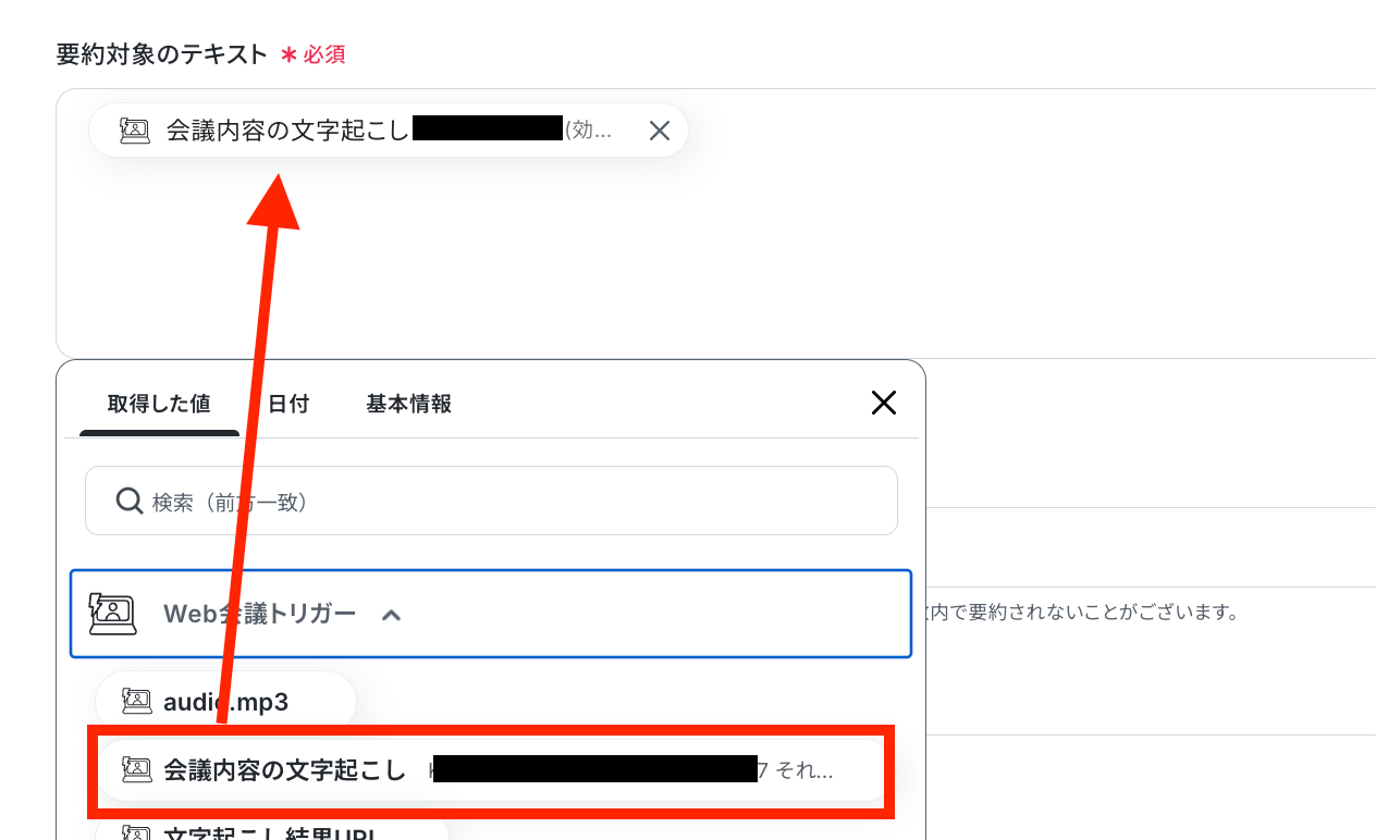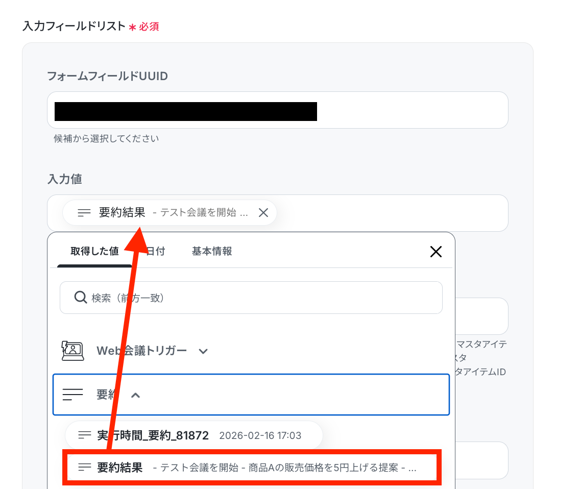 ※入力値には、ステップ4で取得した要約結果を忘れずに選択しましょう。