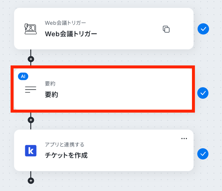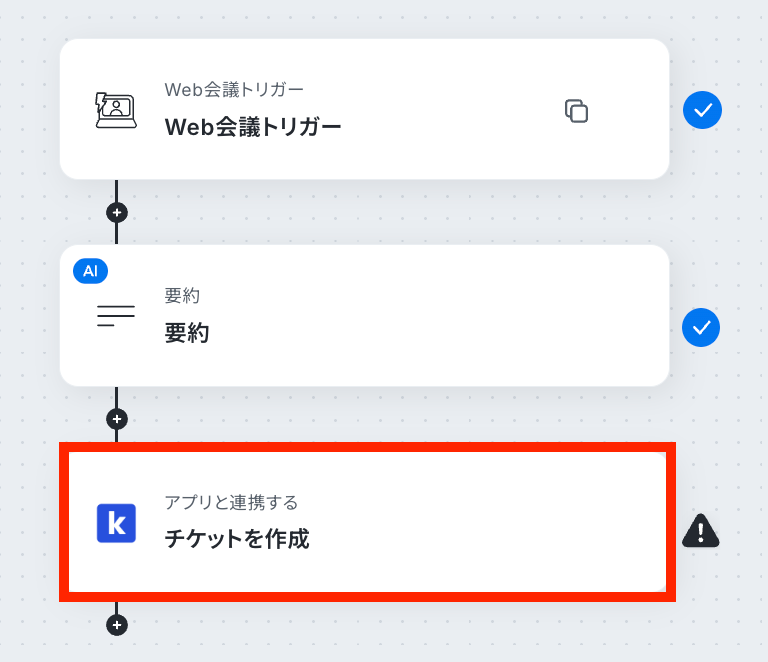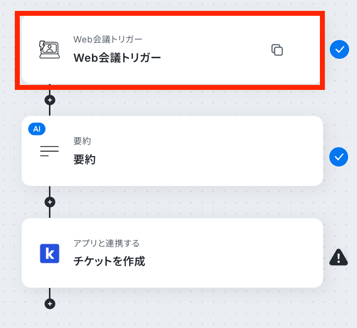 それではここから代表的な例として、Web会議が終了したら自動で文字起こしと要約を行い、kickflowにチケットを作成するフローを解説していきます!