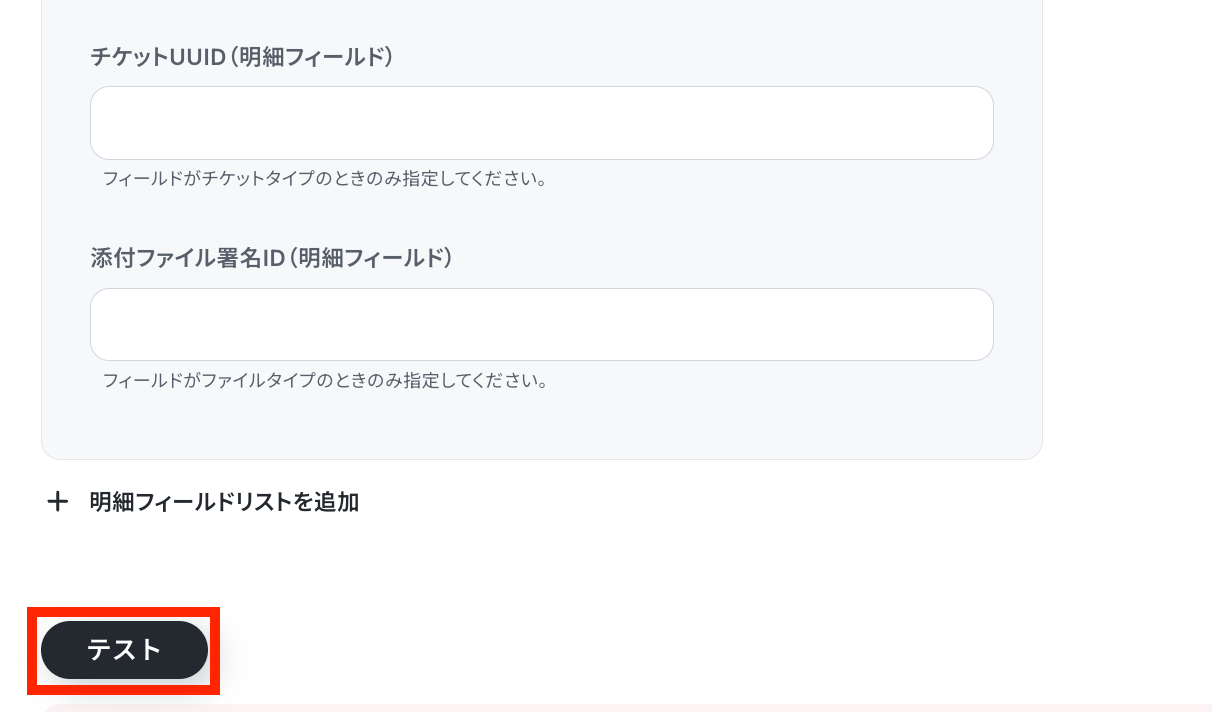 入力フィールドリストを設定していきます。アクション内の注意事項に注意して設定していきましょう!