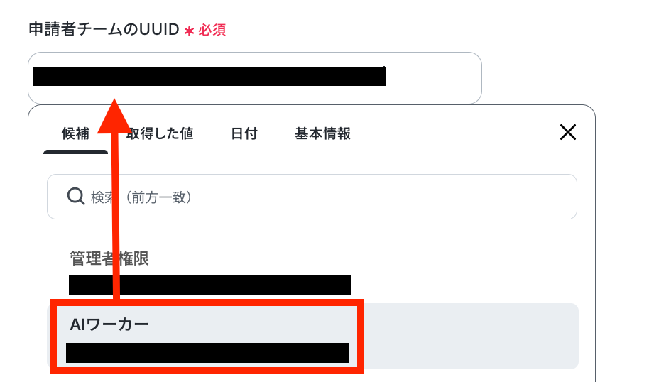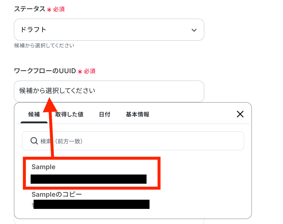ステータスをドロップダウンから選択して、ワークフローのUUIDを候補から選択します!