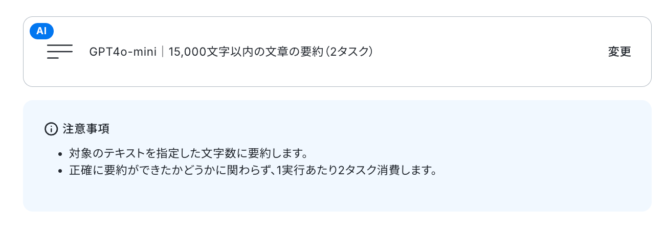文字数を指定します。任意で、要約の条件などを細かく指定が可能です。
