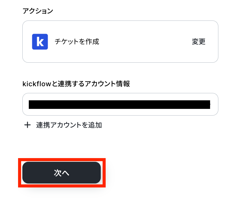 これまでに取得した値を使用して、kickflow上にチケットを作成する設定を行います。