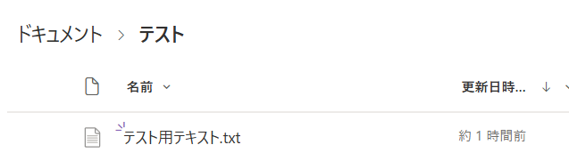 ここで一度、Microsoft SharePointにログインし、指定したフォルダにテスト用のファイルをアップロードしておきます。