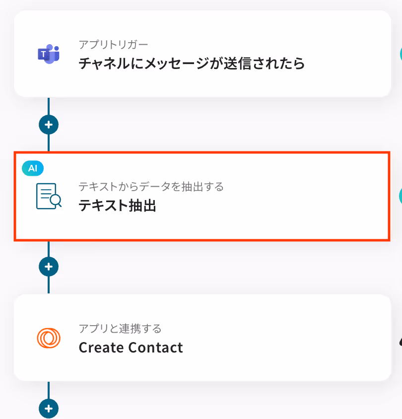 トリガーで取得したメッセージ内容をもとに、AIで特定のテキストを抽出します。
