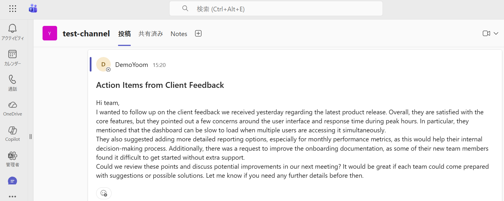 「Microsoft Teamsで海外拠点とやり取りしているけど、外国語のメッセージを毎回翻訳するのが大変…」 「重要なメッセージだけをLarkでチームに共有したいけど、手作業での転記は時間がかかるし抜け漏れも心配…」
