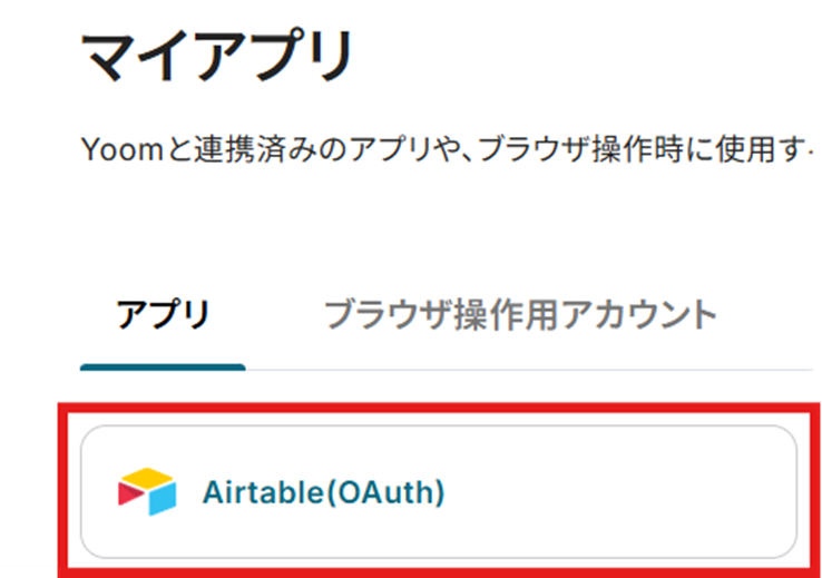 「マイアプリ」にAirtableが表示されていれば連携完了です。