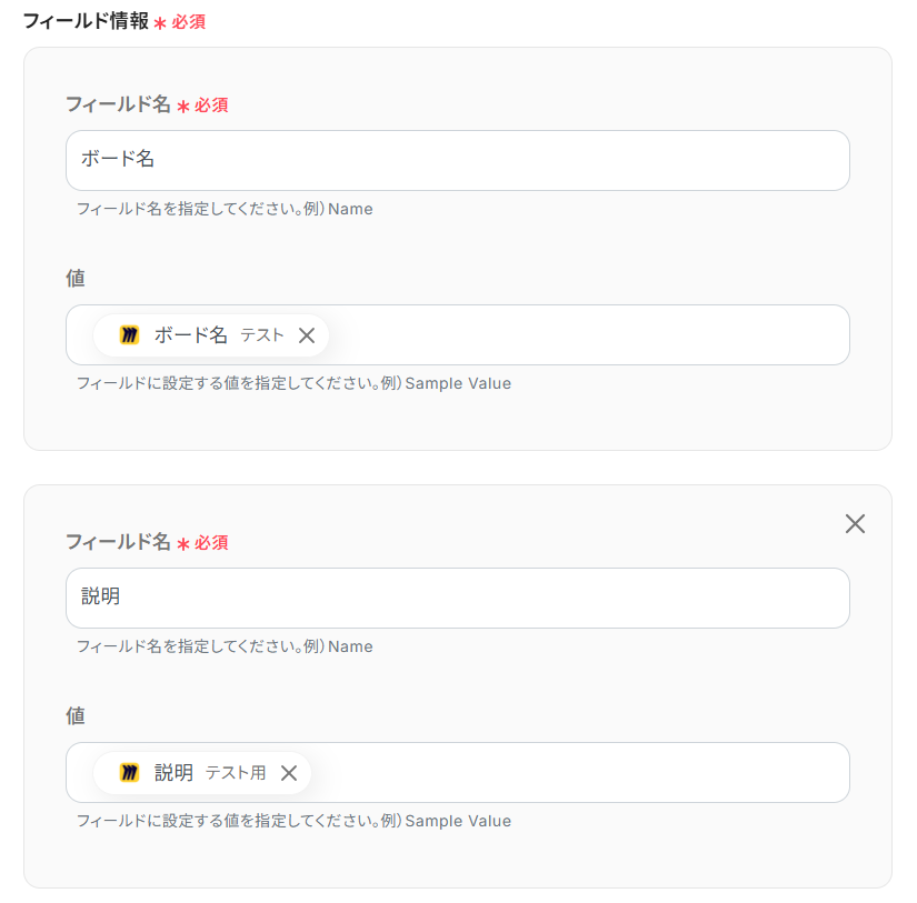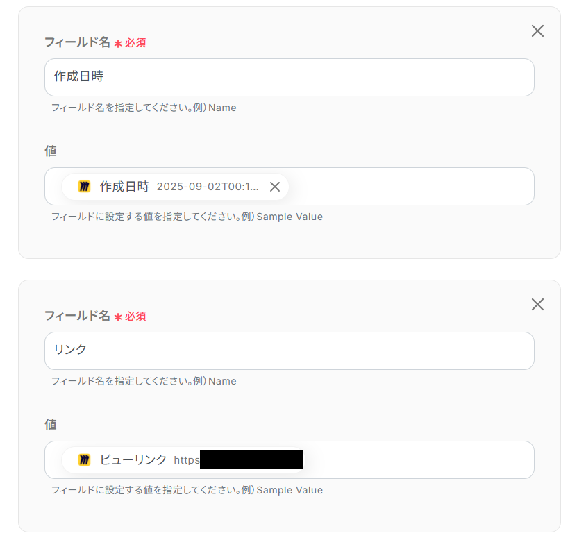 「フィールド名」にはAirtableで作成したテーブルのフィールド名を入力しましょう。