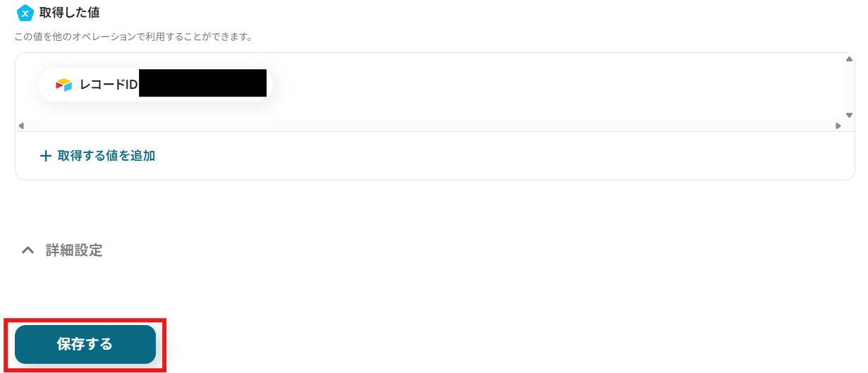 「取得した値」(アウトプット)について、詳しくはこちらをご覧ください。