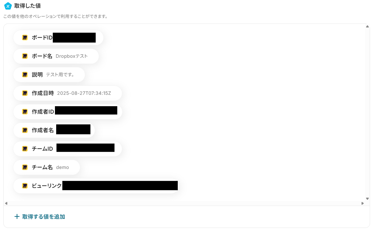 「取得した値」は変数となるため、Miroでボードが作成される度に活用可能です!