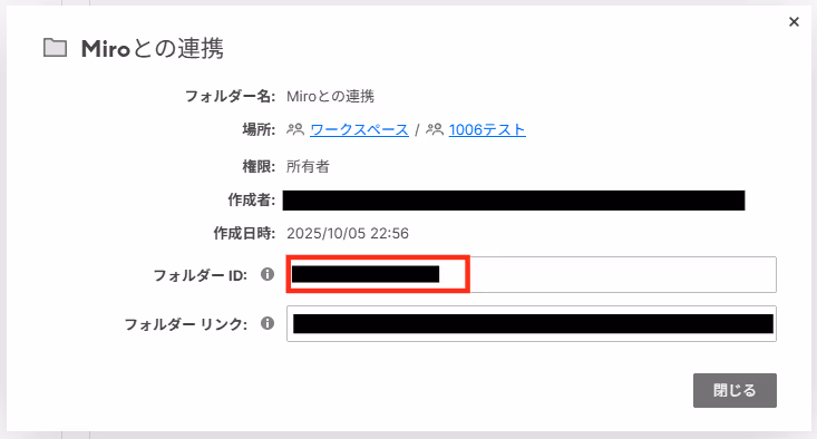フォルダ名にはMiroから取得した値を用いてボード名を入力しました。