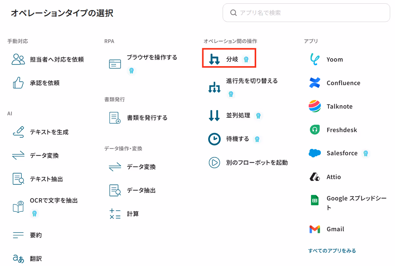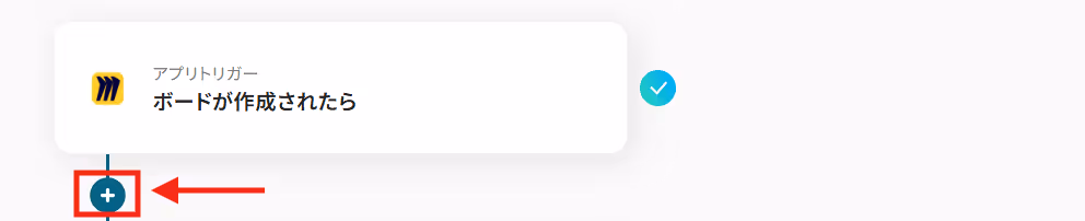 フローボットでMiroのトリガーアクション「ボードが作成されたら」以下に続く+ボタンをクリックし、有料プランで利用可能な分岐オペレーションを追加します。