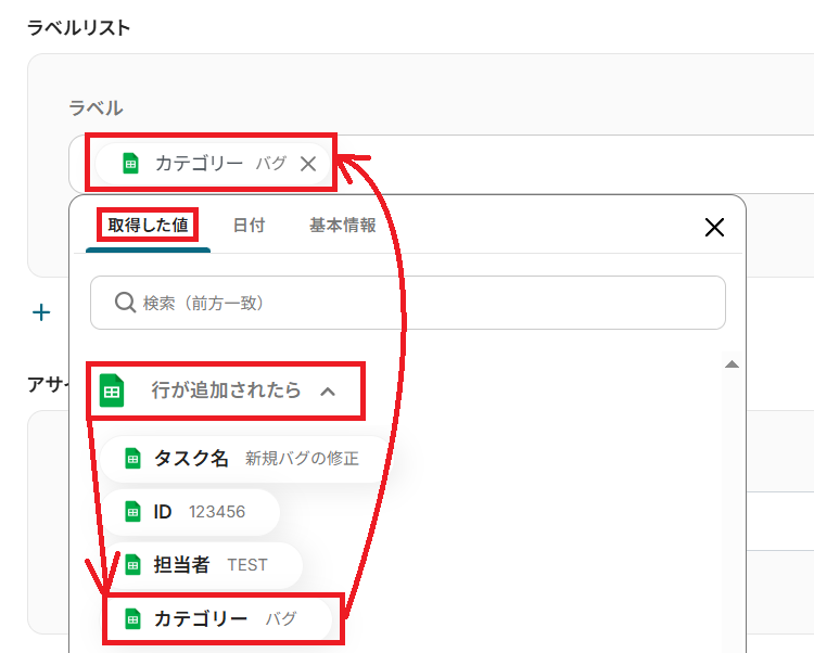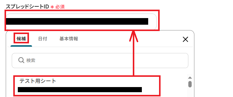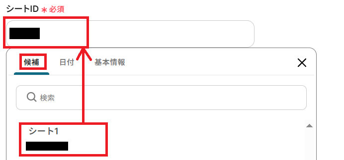 シートIDも同様に、ボックスをクリックして下に出てくる候補から任意のシートを選択してください。