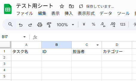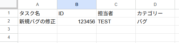 例えばこのフローボットでは、テスト用に以下のようなシートを使います。