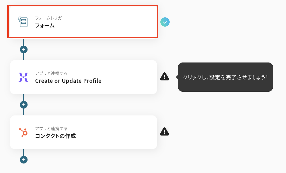 今回は「フォームで回答が送信されたら、MixpanelでProfileを作成し、HubSpotでコンタクトを作成する」フローを作成していきます!