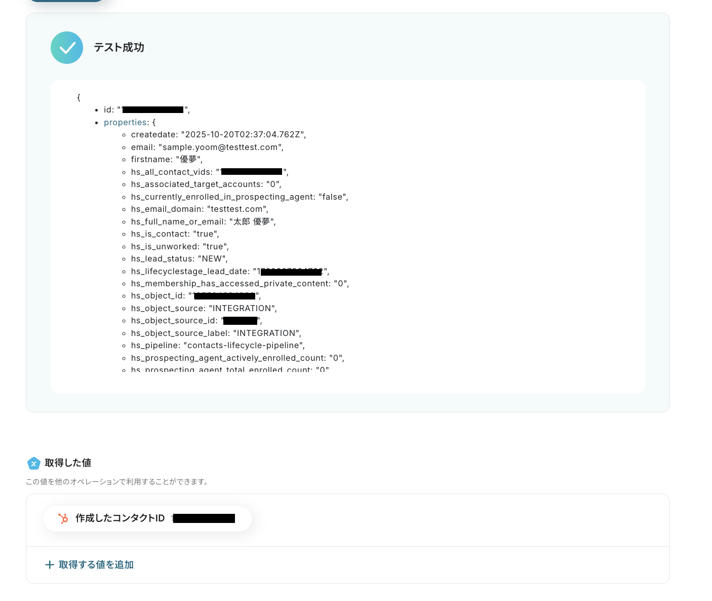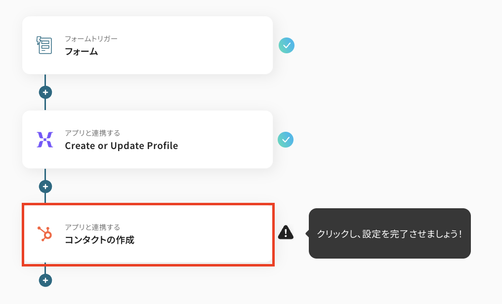 ステップ4同様に、フォームの回答データを使ってHubSpotにコンタクトを作成する設定を行います。