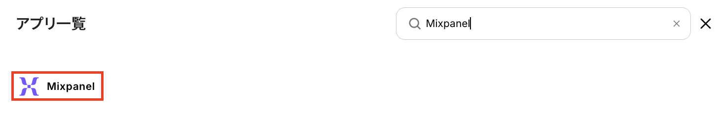 検索窓にMixpanelと入力し、表示された候補からアプリを選択します。