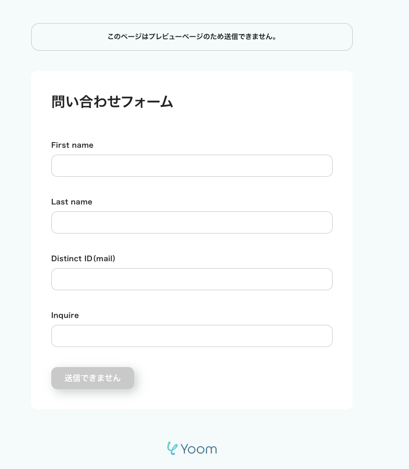 先ほど設定したフォームの内容が正しく反映できているか、プレビューで確認してみてくださいね!