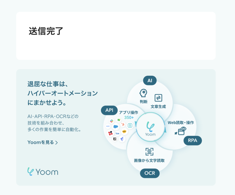 今回ご紹介したような業務自動化は、ノーコードツールYoomを使えば、プログラミングの知識がない方でも、画面の指示に従って操作するだけで直感的にフローを構築できるのも魅力ですよね!