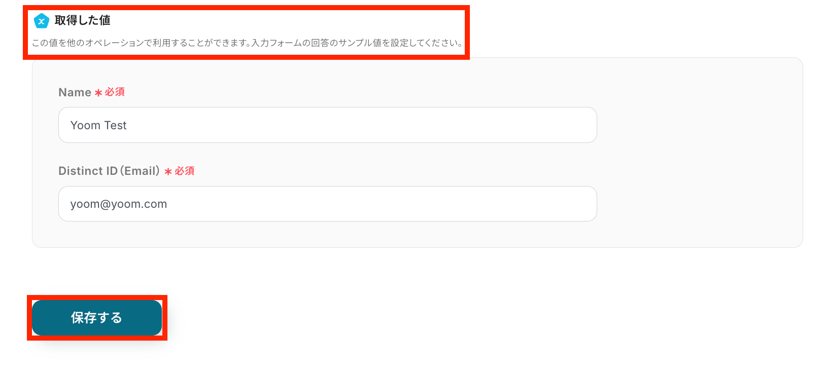 確認できたら、Yoomの設定画面に戻って「保存する」ボタンを押します。