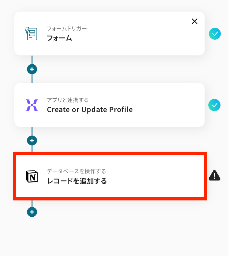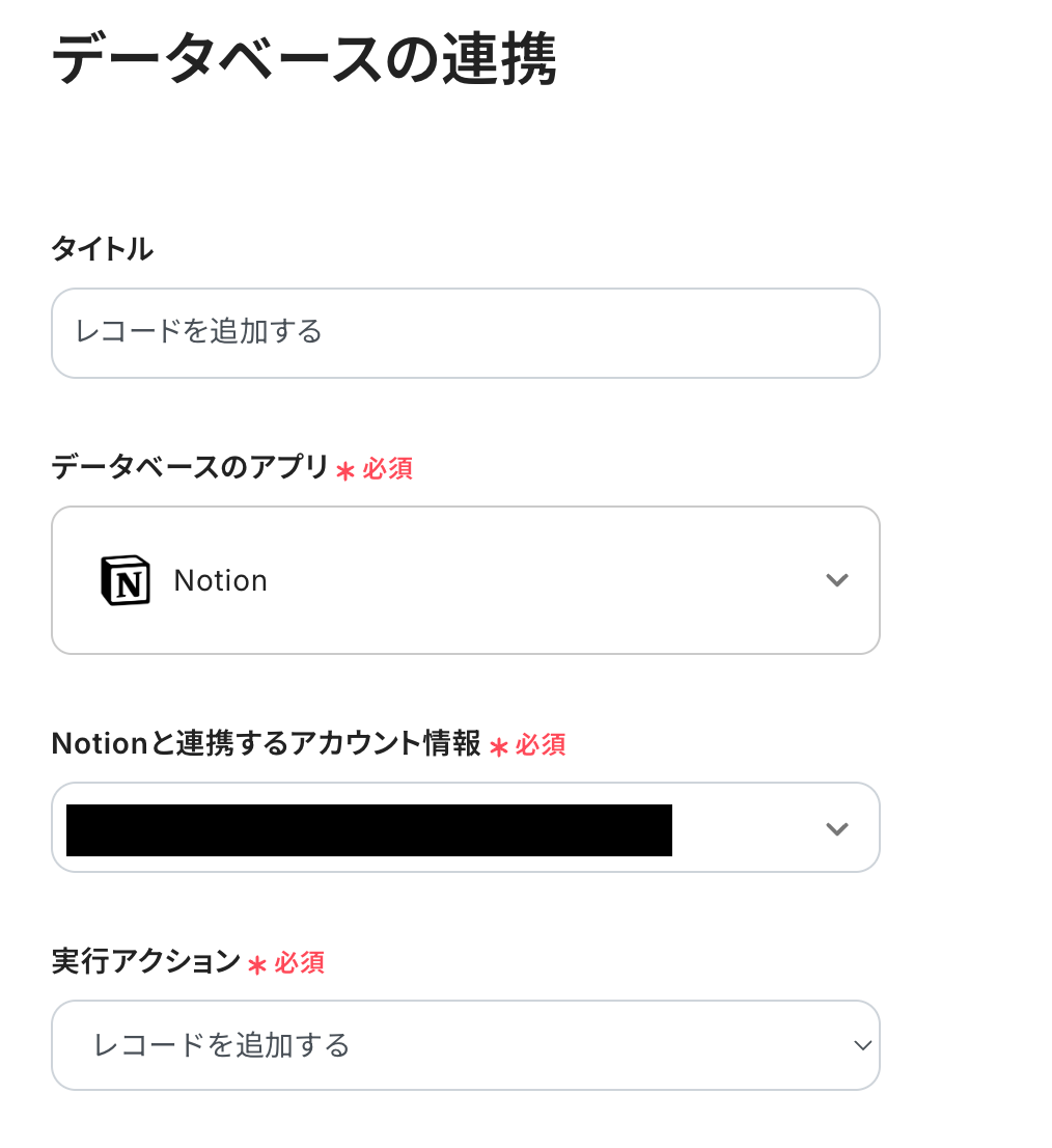 同じく、フォームの回答内容を利用して、Notionにレコードを追加する設定を行います。