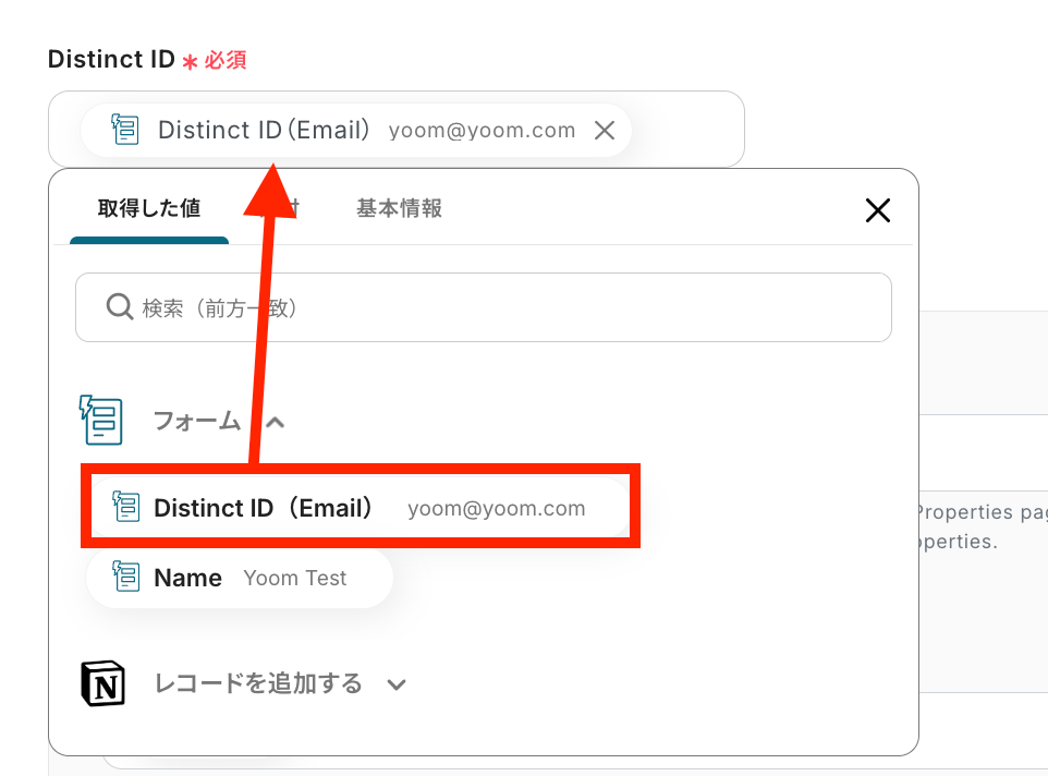 続けて、「Distinct ID」はフォームで取得した値を活用しましょう。