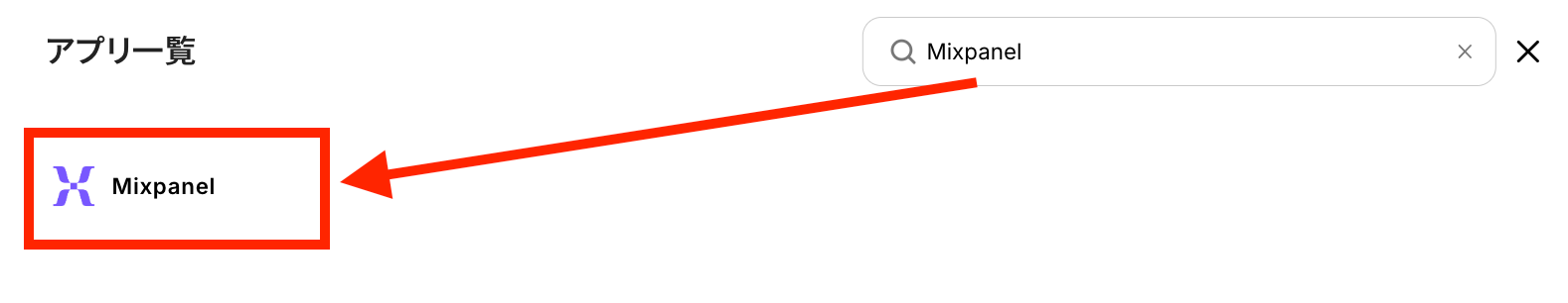 右上の検索ボックスに「Mixpanel」と入力して、表示されたアイコンをクリックします。