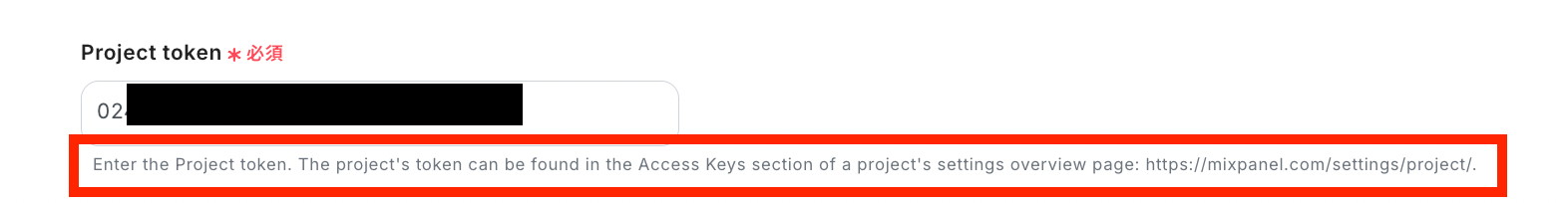 「Project token」も赤枠の注記を確認しながら設定します。