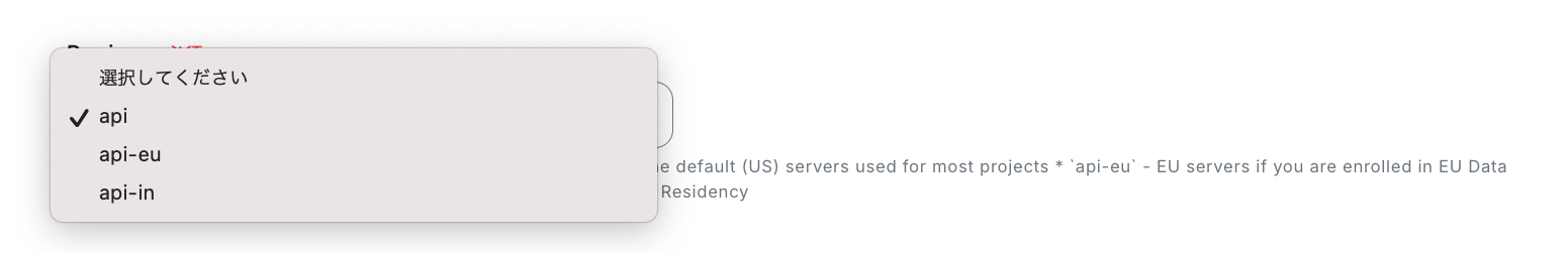 「Region」を選択肢の中から選択します。