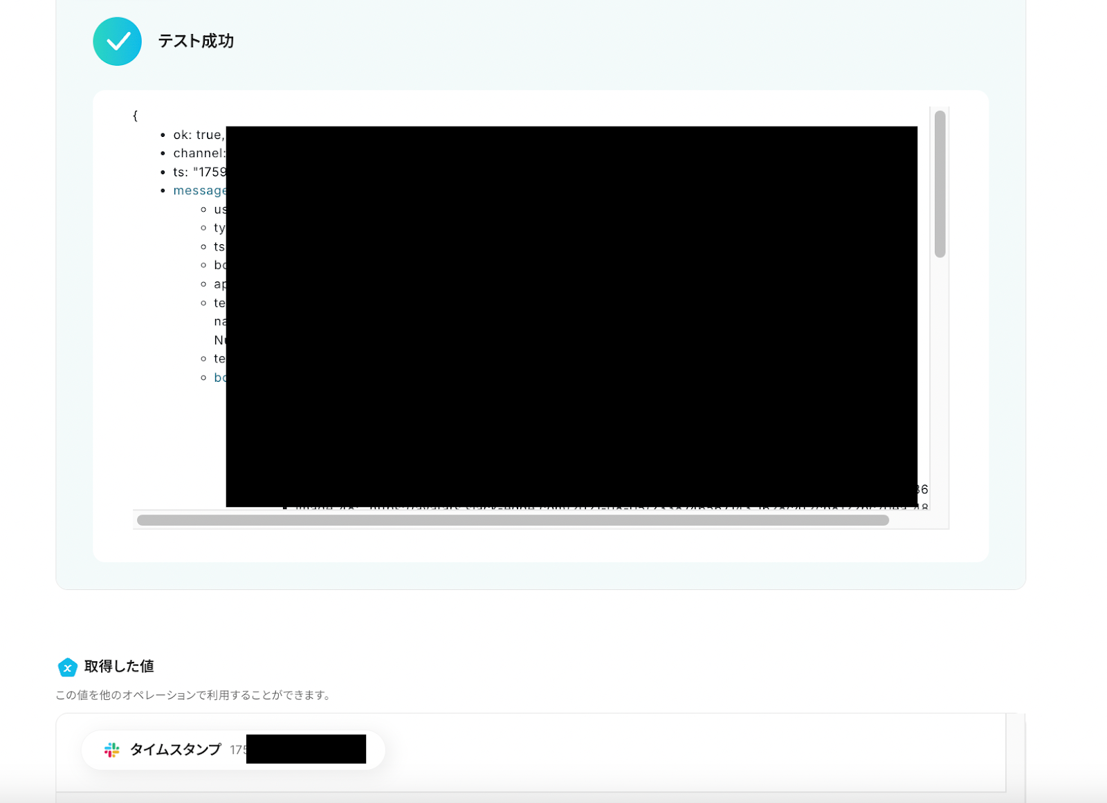 - 最後に、Slackの「チャンネルにメッセージを送る」アクションを設定し、トリガーで取得した注文情報を指定のチャンネルに通知します。