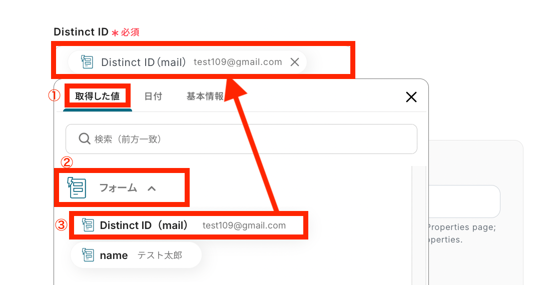 次に「Distinct ID」を設定します。