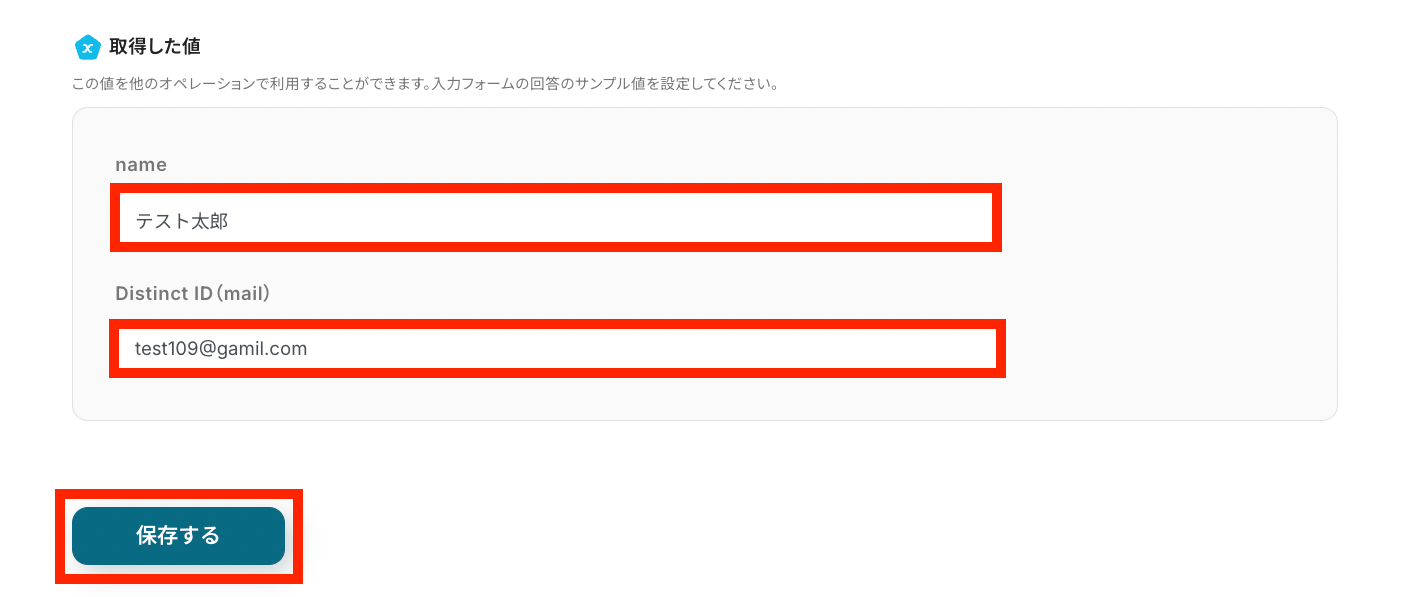直接手入力するのではなく、ステップ3で取得したフォームの値を埋め込んでください。