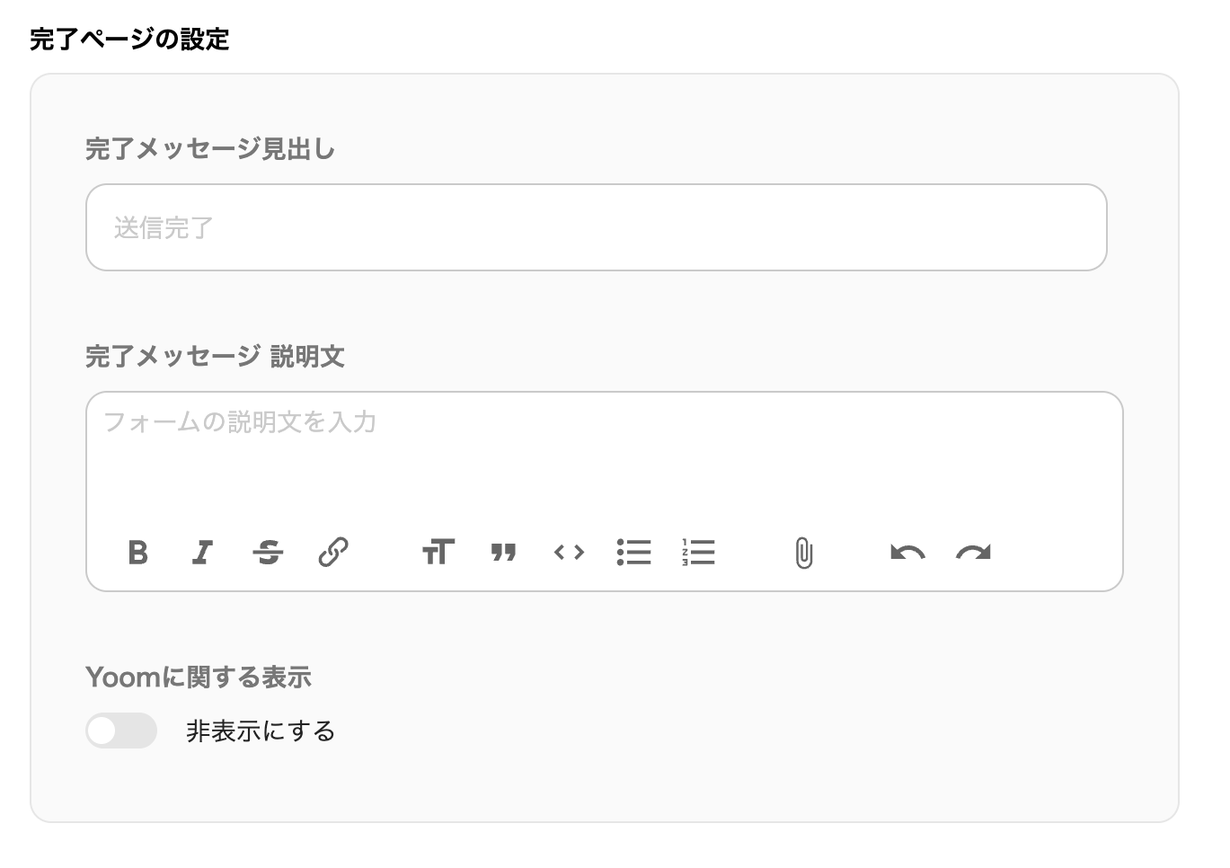 次に「完了ページの設定」を行います。