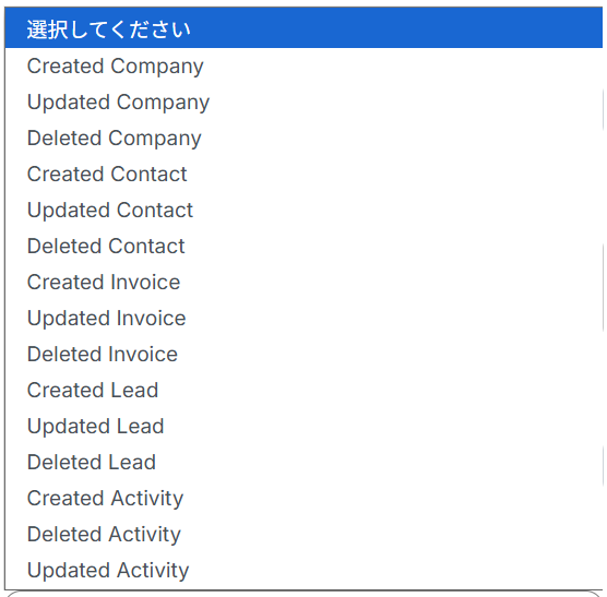 また、Contact以外にもInvoiceやCompanyなど他の項目の作成や更新、削除なども同様にトリガーとして設定可能です。