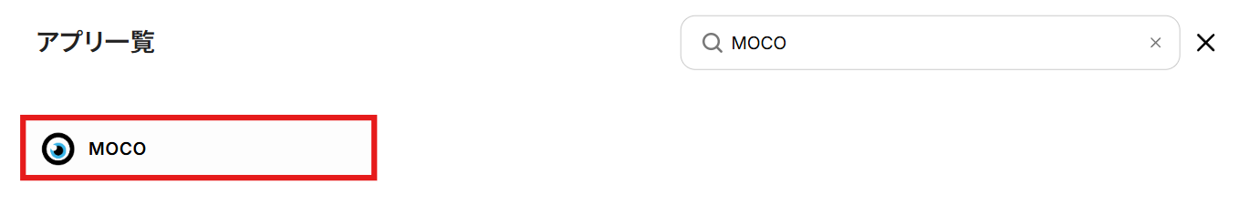 検索ボックスにMOCOと入力し、アプリをクリックしてください。