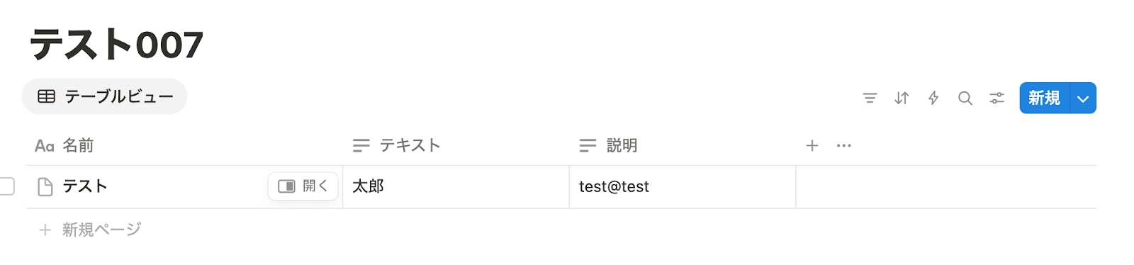 テストに成功すると、Notionで作成されたページに関する情報が一覧で表示されます。