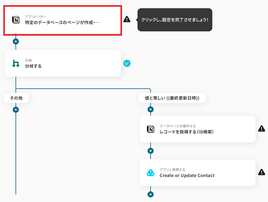 今回は「Notionにレコードが作成されたら、GistにContactを作成する」フローを作成していきます!作成の流れは大きく分けて以下です。