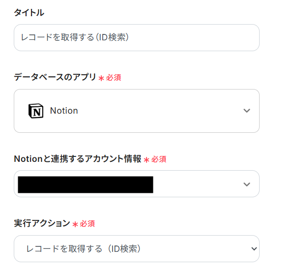 実行アクションは「レコードを取得する(ID検索)」のままでOKです!