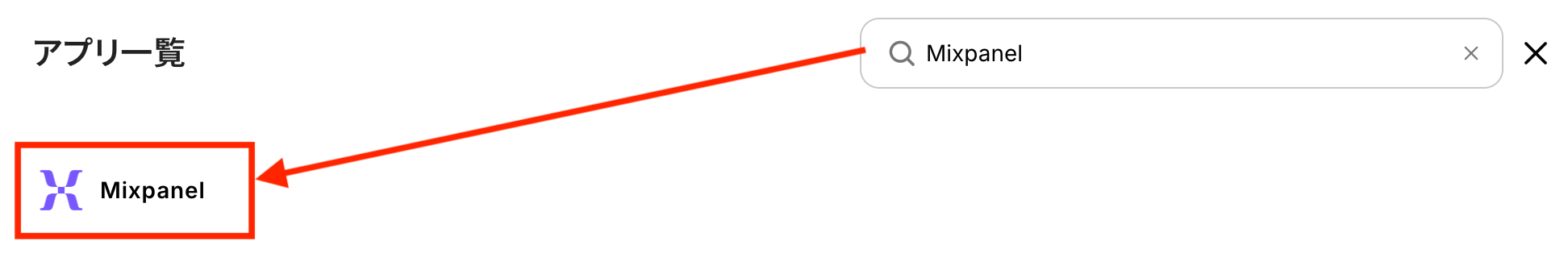 検索ボックスに「Mixpanel」と入力してアイコンをクリックします。