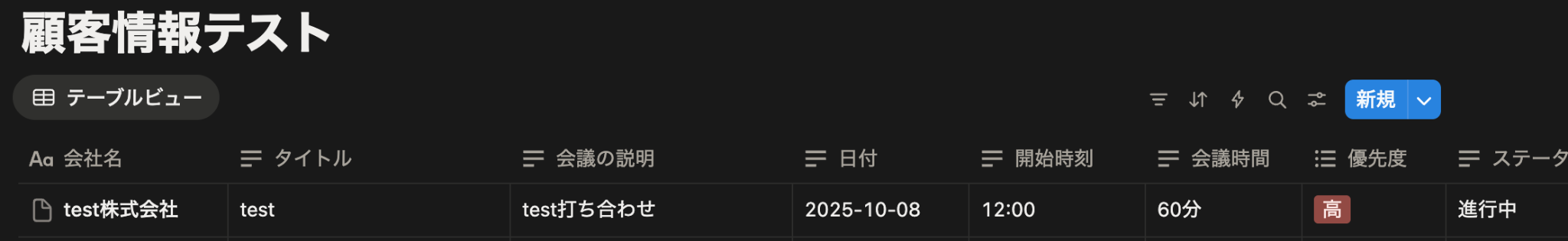 テストが成功すると、会社名や会議の説明などの内容が表示されます。