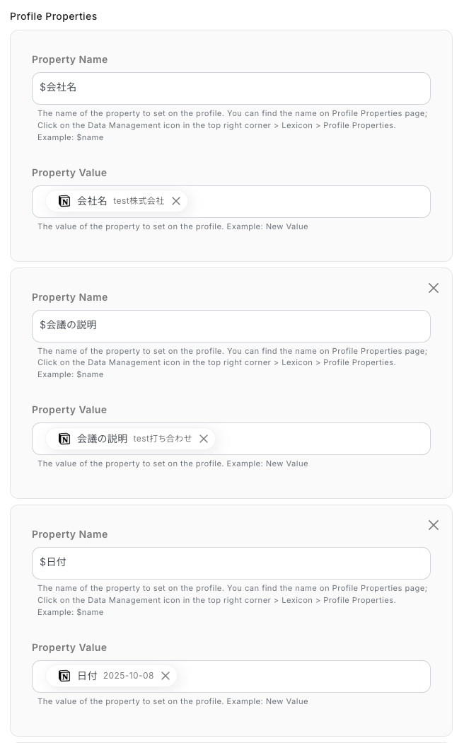 - Mixpanelのオペレーションでは、前段のステップで取得した値を引用し、プロファイルの各フィールドに自由にマッピングできます