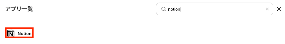 新規接続を押したあと、アプリのメニュー一覧が表示されるのでNotionと検索し対象アプリをクリックしてください。