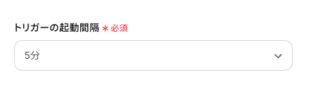 なお、トリガーの起動間隔は 5分・10分・15分・30分・60分 から選択できます。 利用できる起動間隔はご契約プラン によって異なります。
