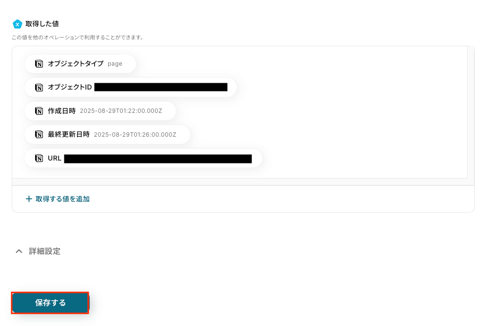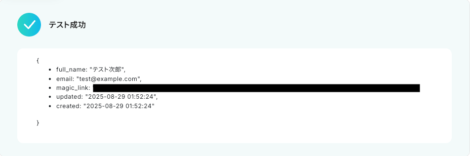 テストに成功すると、Notionで新たに作成されたデータベースに関する情報が一覧で表示されます。