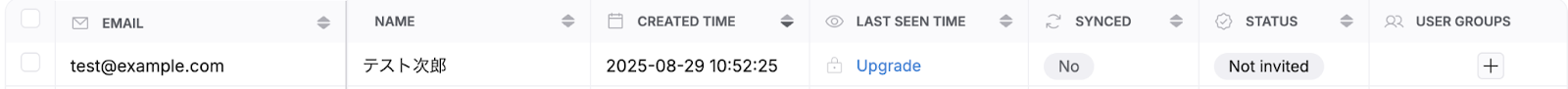 テストが成功すると、作成されたユーザーの情報が一覧で表示されます。