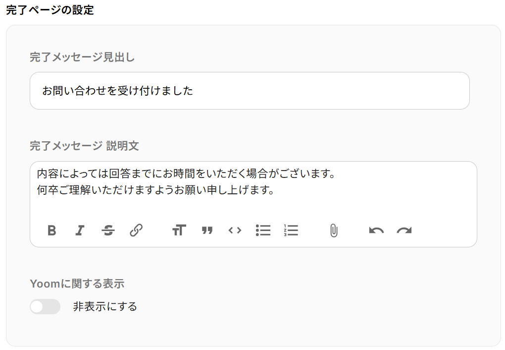 ※フォームの設定詳細についてはこちらをご参照ください。 https://intercom.help/yoom/ja/articles/8009267