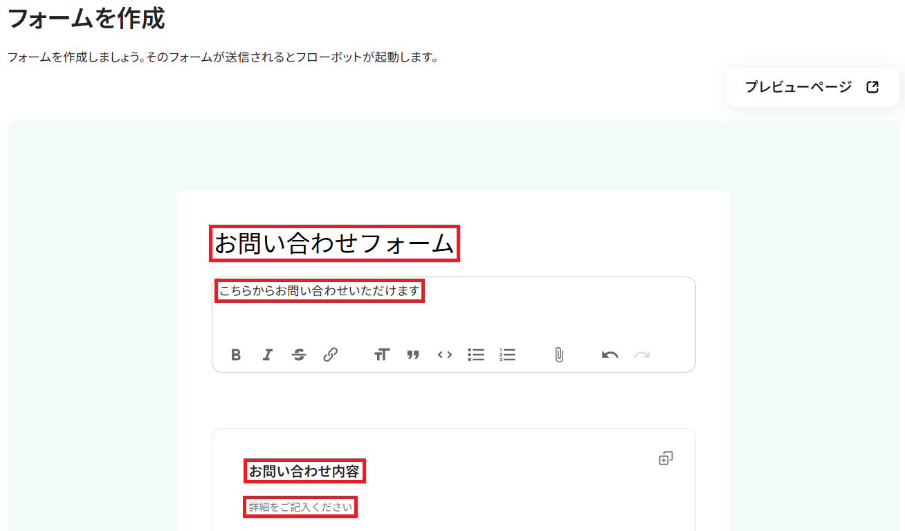 遷移先の画面で「プレビューページ」「完了ページ」をそれぞれクリックして表示を確認しましょう。