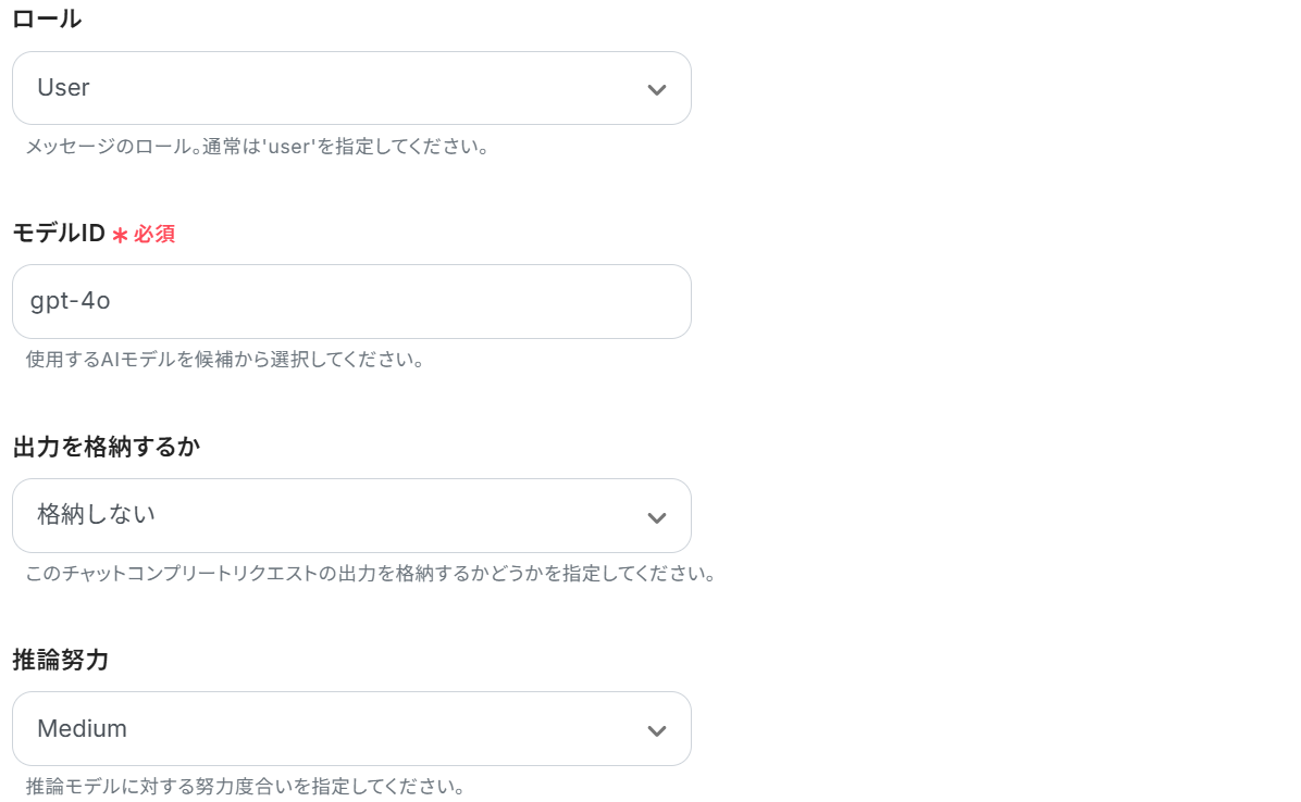 ・ロール:ChatGPTの回答ロールを選択してください。※基本はユーザーの設定