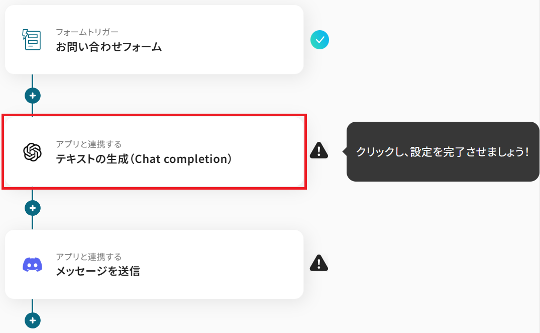 お問い合わせフォームやアンケートなど、日々受信するテキスト情報の確認に時間を要していませんか?特に長文の場合は内容を把握するだけでも一苦労です。このワークフローは、フォームで送信された内容をOpenAIが自動で要約し、指定したDiscordチャンネルへ通知する仕組みを構築します。DiscordとOpenAIを連携させることで、内容把握にかかる時間を短縮し、迅速な状況把握と対応を実現できます。