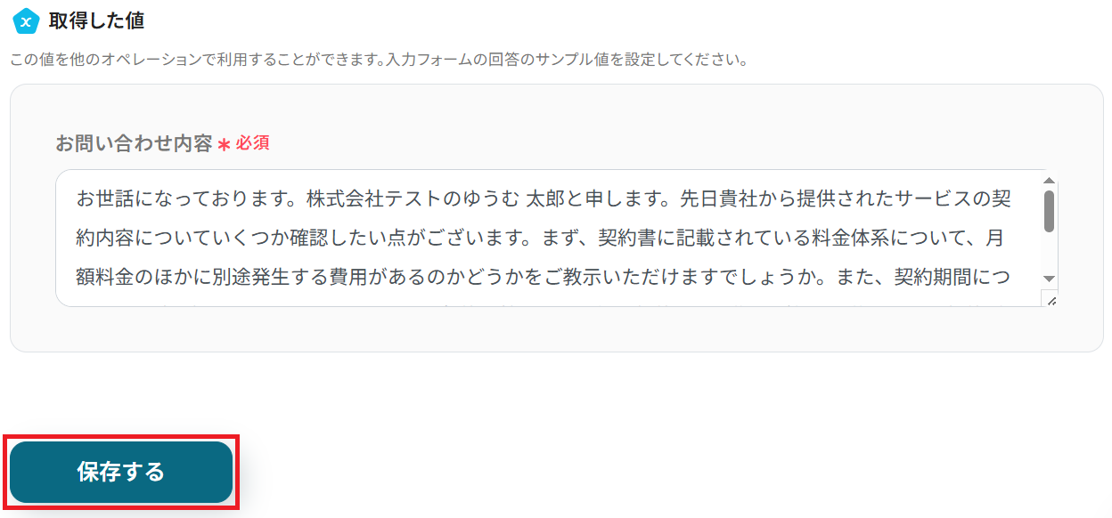 この連携はフォーム送信をトリガーとするため、担当者が内容を確認して要点をまとめる手間を削減します。
