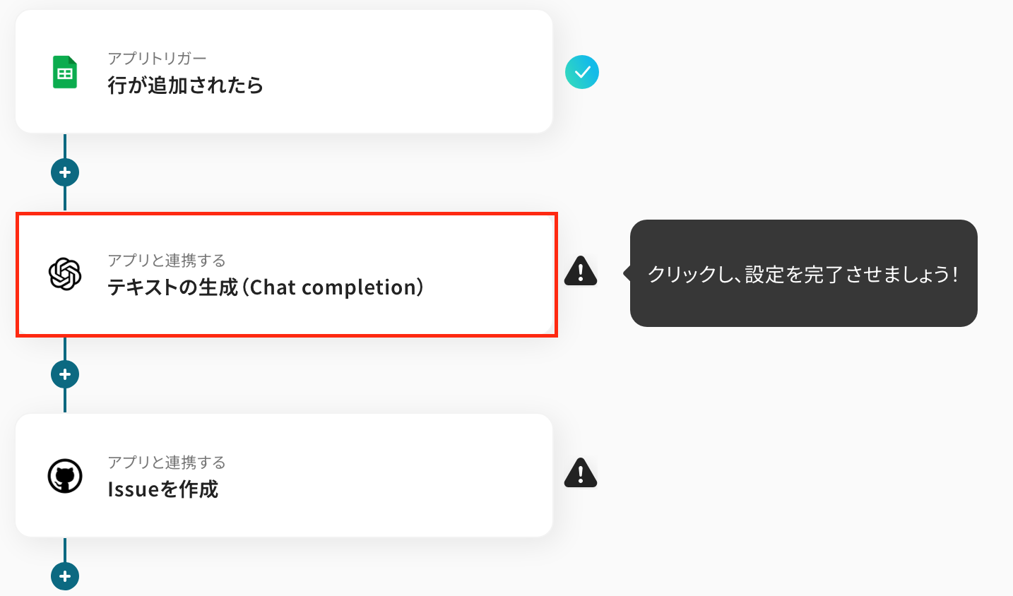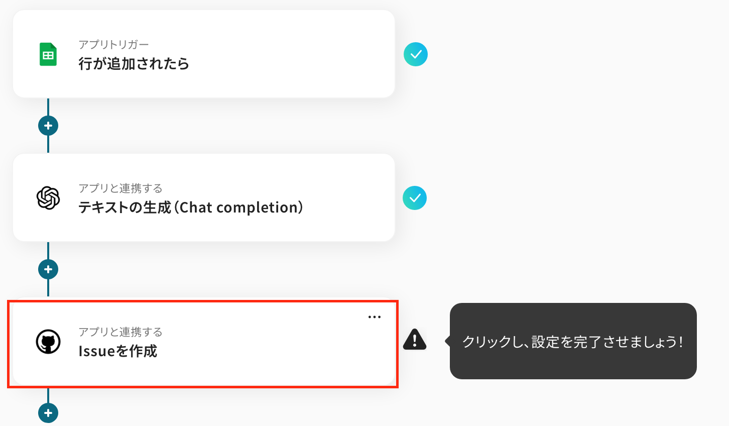 例えば、タスク管理シートに追加された項目を基にOpenAIが内容を分析し、自動でGitHubにIssueを作成する、といった一連の流れを完全に自動化できます。